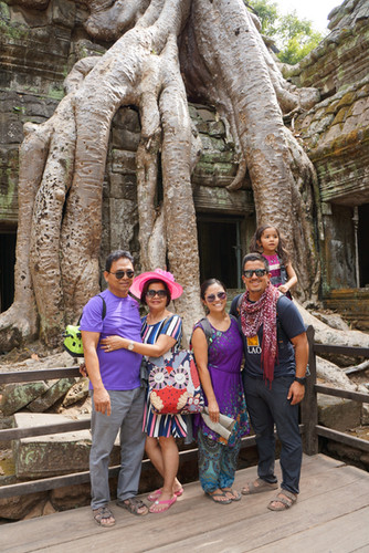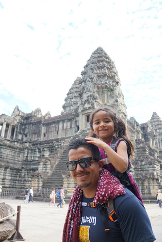 Day 17: Siem Reap - On our first day in Cambodia, we were picked up at 8am and visited the main Angkor Wat temple, Ta Prohm and Bayon temple. It was quite crowded but our guide managed to find us private photo opportunities. The temples are truly magnificent especially the tree roots growing through while keeping the temples mostly intact. Addie walked for a portion of this tour but Angel carried her in the piggyback carrier for most of the time. Then Addie and Angel became a Chinese tourist attraction! We think that because of the piggyback carrier several Chinese tourist took selfies with them, haha! In the evening, my parents offered to watch Addie so we could enjoy the night market alone. We had a tickly fish foot message, full body massages, drank Angkor beer and bought a few souvenirs.