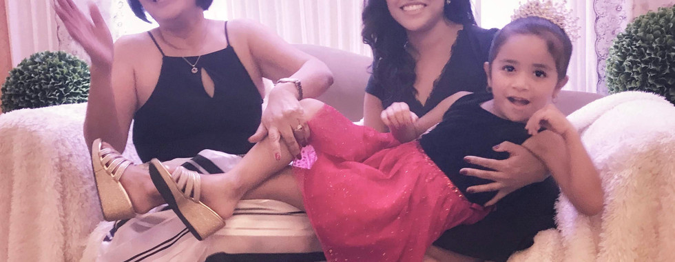 Day 26: My mom's 60th bday party! My mom hired someone to do our hair and makeup and of course Addie wanted hers done as well! She got some glitter on her eyelids, lipstick and a simple updo. We celebrated the night away with family & friends.