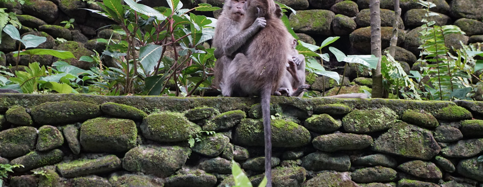 Day 28: Ubud - We checked into our adorable Ubud B&B and got a free upgrade because the person occupying our original room was sick and had to extend their stay. We ended up with an entire floor overlooking the jungle and small river! We headed over to the sacred monkey forest - Several monkeys immediately jumped onto Angel and dug through his pockets because he had a packet of dried mangos and a water bottle. He had to throw both in the trash so the monkeys would stop! We saw another monkey open up someone else’s backpack, a monkey with a pen and some with huge teeth! Addie thought it was hilarious but scared one would jump on her so she kept covering her eyes because earlier we were warned about not looking them directly in the eyes since they could view it as a sign of aggression. We did see several cute little baby monkeys nursing from their mothers, cuddling and cleaning each other. Their cuteness made up for that initial attack and we headed out on a good note. But then there where also a lot of monkeys outside the sanctuary, waiting to steal things! We bought a few snacks at a convenient store and right as we exited, a monkey grabbed our potato chips!!! Addie couldn’t stop laughing and kept calling them “naughty monkeys!” A taxi driver told us it’s very common for the monkeys to steal, especially plastic bags with snacks and bottled water. They’re also a nuisance at local hotels- “checking in” by hanging out poolside and sneaking into rooms! Luckily we were safe at our B&B!